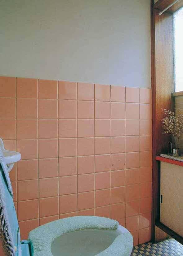 地板瓷砖、正面和脚下的采光、架子上的装饰……这样的厕所空间让人忍不住久坐不起。