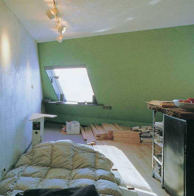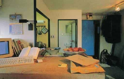 这是一位久居日本的美国男性的住处。他是一名现代日本文学翻译家,租住在市中心时尚街区的一居室公寓里。二十世纪六十年代初,从斯堪的纳维亚回国的年轻建筑设计师设计了这座建筑物,里面莫名荡漾着一股现代主义的气息。房间位于小楼房的顶层,呈梯形的房间很有意思。虽然刚刚搬过来,但屋主擅长木工,内部装修全部自己搞定。质感良好,令人倍感舒适的墙壁是他自己用涂料混合砂土调配刷成的。他还买来了木地板,正在亲自铺装。